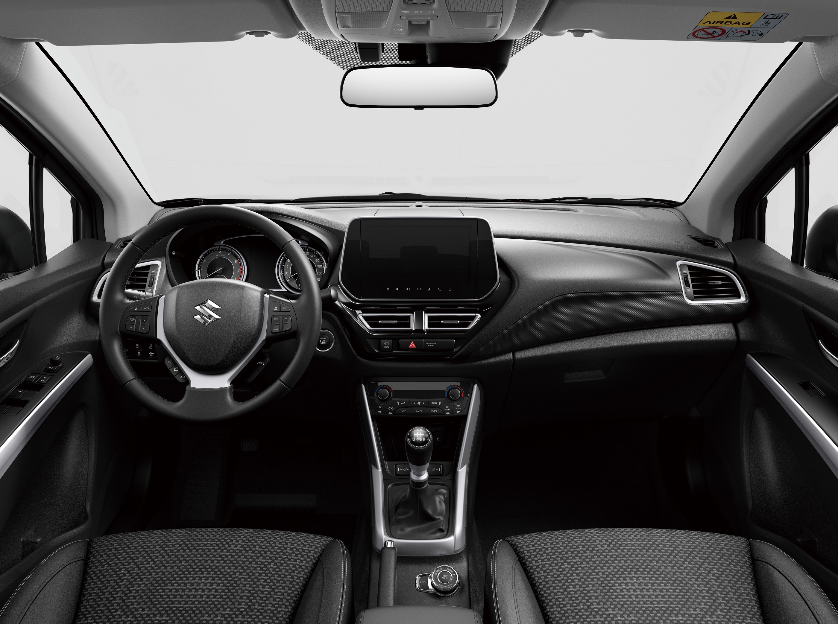 Novost je kod S-Crossa, koji je mutirao iz crossovera u klasični SUV, i u unutrašnjosti. Kod prethodnika je multimedija bila ukomponirana u instrumentnu ploču, dok je sada ona odvojena i nalazi se iznad nje. U najbogatijoj opremi tu je i 9-inčni zaslon koji prikazuje najnovije praktične digitalne značajke, uključujući Apple CarPlay®, Android Auto™, prepoznavanje glasa i hands-free Bluetooth® opciju poziva.