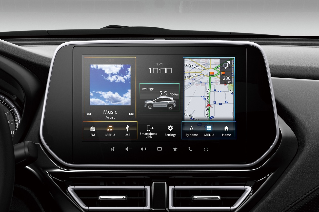Držeći vas povezane s vozilom, također prikazuje informacije kao što su potrošnja goriva, doseg vožnje, SHVS (blagi 48-voltni hibridni pogon) protok energije, razna upozorenja, prikaz stražnje kamere, prikaz 360 kamere i stražnje parkirne senzore. U srednjem paketu opreme (Premium GL+) ugrađeni su prednji i stražnji parkirni senzori uz kameru za vožnju unatrag, dok je dodirni zaslon veličine 7 inča. Tu je i automatsko paljenje svjetala, kao i maglenke, sklapanje vanjskih retrovizora na struju, u koje su integrirani pokazivači smjera. U najbogatijem paketu opreme (Elegance GLX) dolazi i kamera od 360 stupnjeva te, naravno, kožna sjedala, navigacija, 9-inčni zaslon osjetljiv na dodir.
