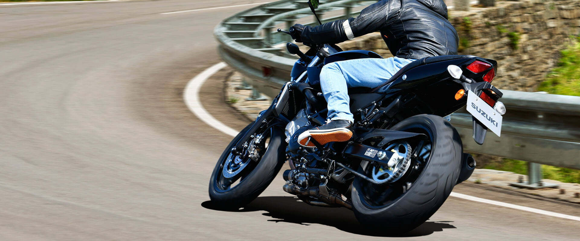 SV650X koristi Dunlop Roadsmart III gume. Dobro uzemljen s izvanrednim performansama na vlažnoj podlozi, Roadsmart III jamči sigurno upravljanje.