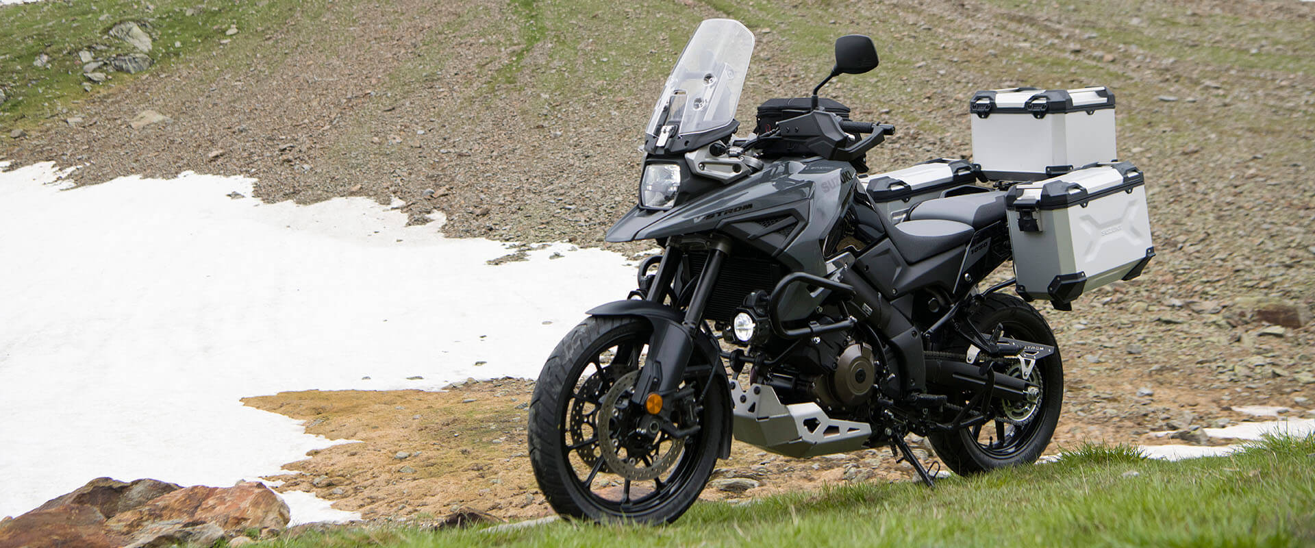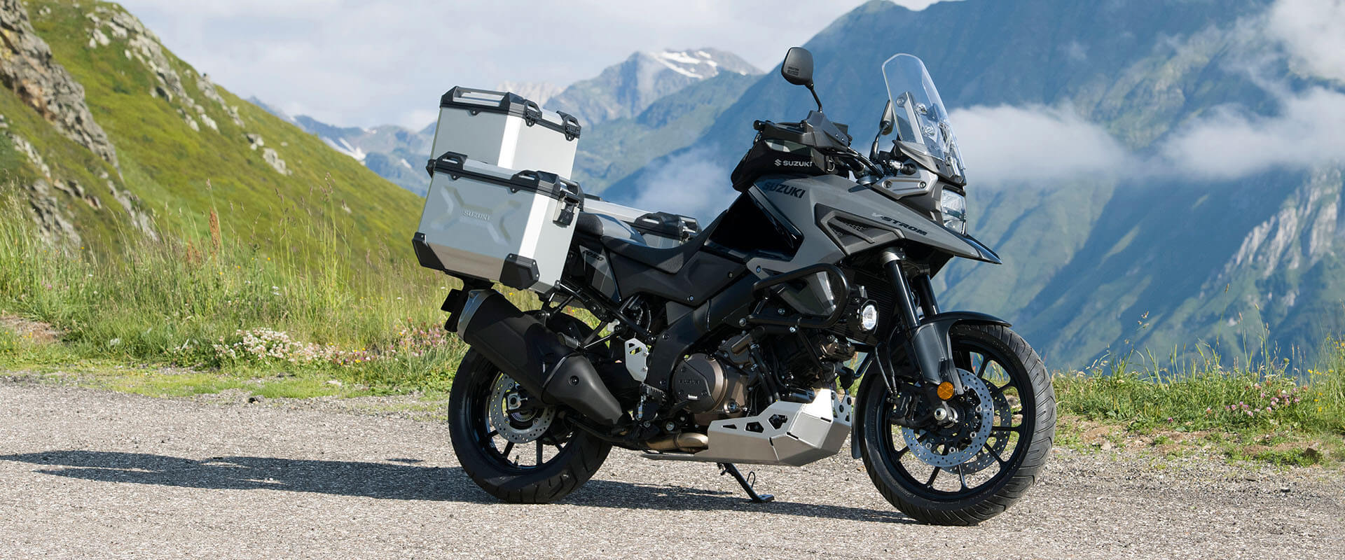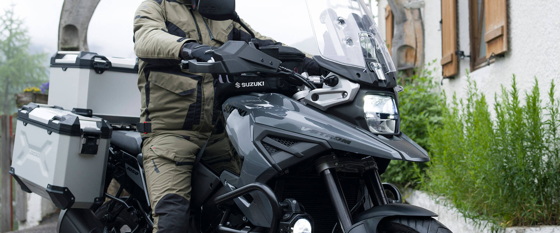 S unutarnjom cijevi promjera svega 43 mm, predopterećena opruga i prigušenje kompresije/odbijanja KYB preokrenutih prednjih vilica može se podesiti u potpunosti, omogućavajući postavljanje ovjesa na temelju želja vozača ili uvjeta uporabe. Stražnji ovjes je s donjom sponom mono-šok, a predopterećenje se može jednostavno podesiti zakretanjem brojčanika rukom. V-STROM 1050XT koristi DID aluminijske naplatke sa žbicama, dok je model V-STROM 1050 opremljen 10-krakim kotačima od lijevanog aluminija. Bridgestone Battlax Adventure A41 gume standardno su opremljene 110/80R19 radijalnom gumom sprijeda i 150/70R17 straga.